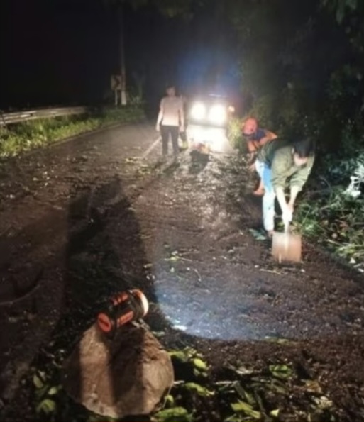Hujan deras sebelumnya mengguyur kawasan itu sejak pukul 18.00 hingga 21.30 WIB. Beberapa jam berselang, sekitar pukul 00.30, warga mendapati tebing sudah ambrol dan menimbun jalan.