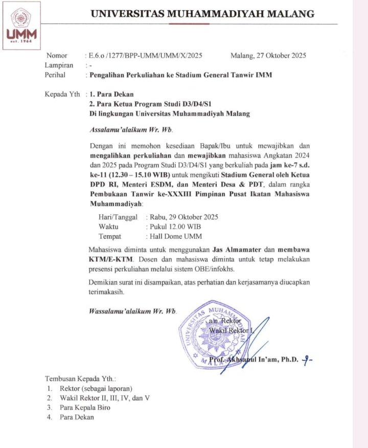 Dalam siaran persnya, HMI Koordinator Komisariat UMM menilai kebijakan tersebut telah melanggar prinsip kebebasan akademik dan menolak pemaksaan ideologis yang dilakukan melalui kewajiban menghadiri acara kampus.